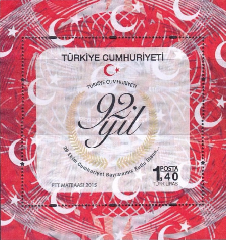 Türkiye Cumhuriyeti’nin 92. Yıldönümü 2015 Posta pulları Türkiye’ye özgü posta pulları arasındadır.